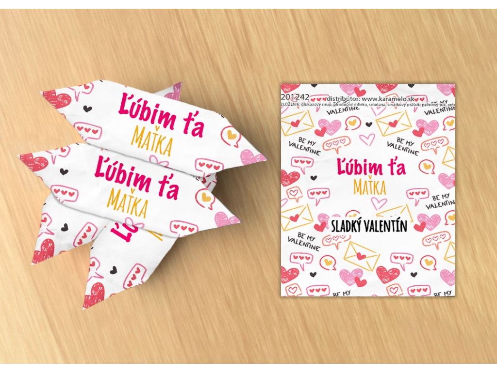 Personalizované karamelové cukríky s jemnou mliečnou príchuťou a Vaším vlastným textom. Ideálny darček na Valentína, ktorý poteší každého! 💕